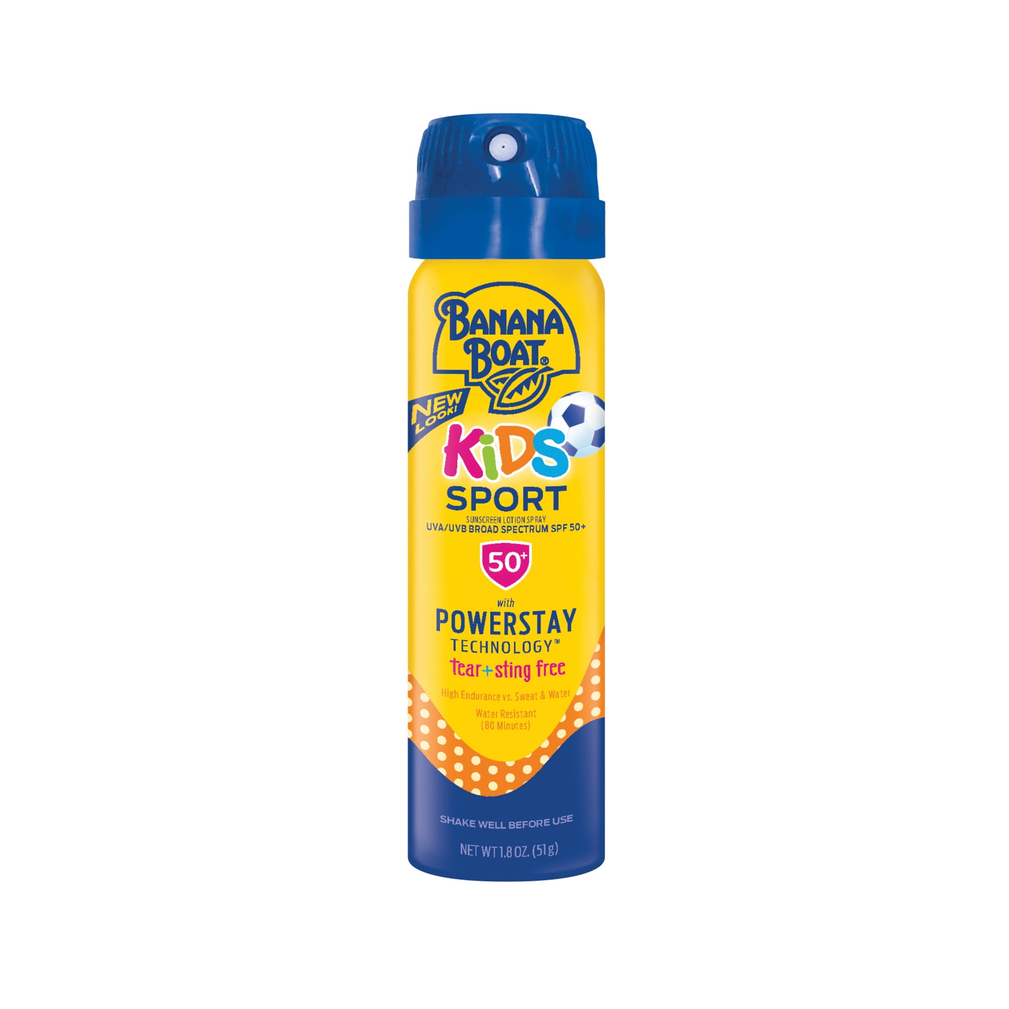 Banana Boat Kids Sunscreen . Banana Boat Kids 360 Coverage Sunscreen Mist SPF 50+ | Kids Sunscreen Applicator, Refillable Sunscreen Bottle, SPF 50 Sunscreen Spray Mist Bottle, Kids Spray Sunscreen, Non-Aerosol Sunscreen, 5.5oz 4.1 out of 5 stars 101 Banana Boat Kids Sport Sunscreen Stick SPF 50, Kids Sunscreen Stick, Child Travel Sunscreen, 0.5 oz